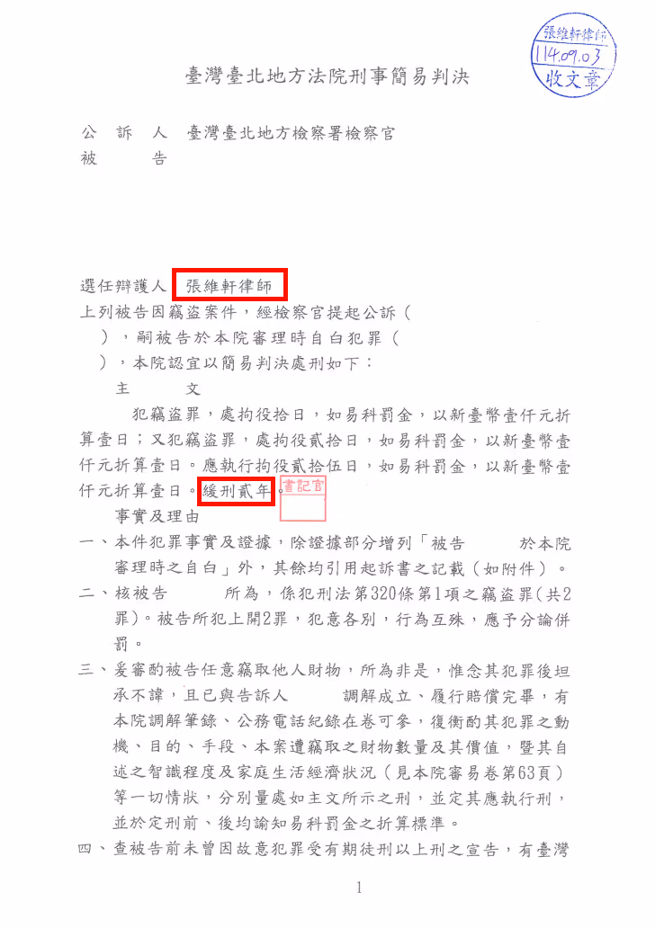 竊盜案 - 緩刑