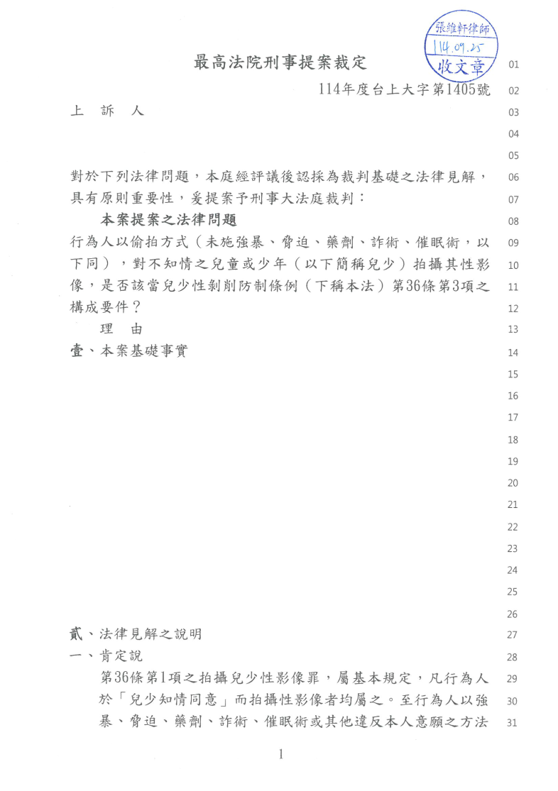 最高法院刑事大法庭提案 – 聲請成功